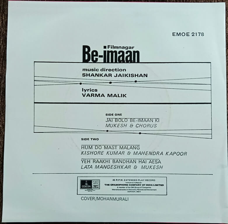 | A1. Jai Bolo Beimaaan Ki | : | Mukesh, Chorus |