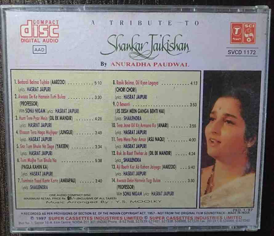 | Title | : | Anuradha Paudwal - A Tribute To Shankar-Jaikishan |