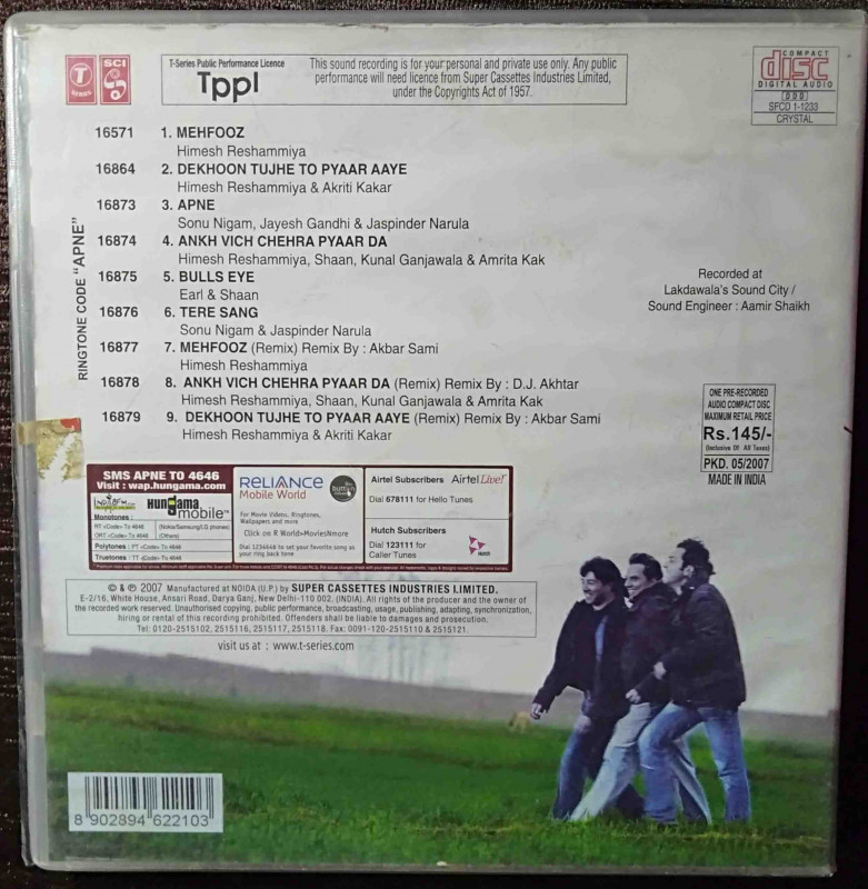 | 8. Ankh Vich Chehra Pyaar Da (Remix) | : | DJ Akhtar, Himesh Reshammiya, Shaan, Kunal Ganjawala, Amrita Kak |