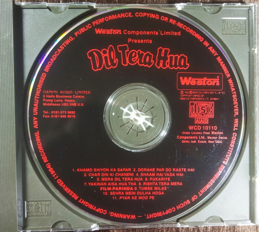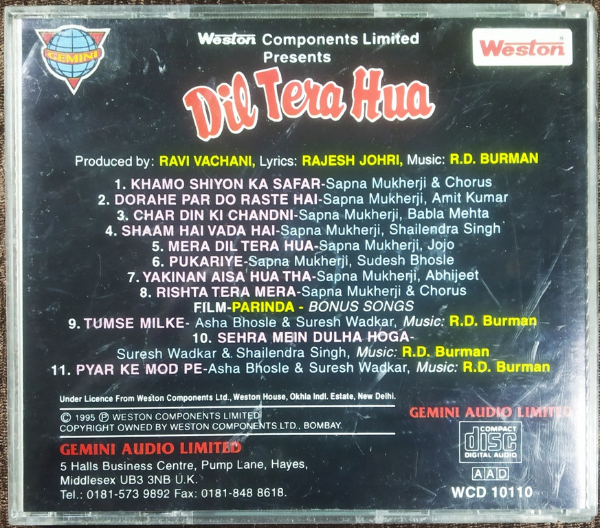 | Title | : | Dil Tera Hua (Sapna Mukherjee, R. D. Burman) / 3 songs from Parinda |