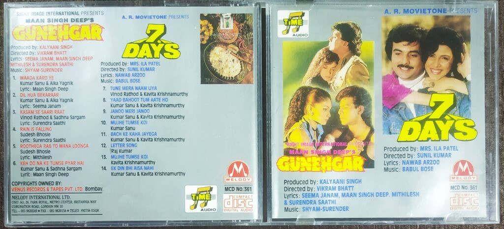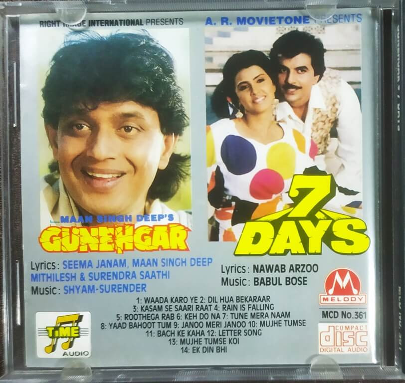 Gunehgar / 7 days (1995-1994) Babul Bose Pre-Owned Melody Imported Audio CD
