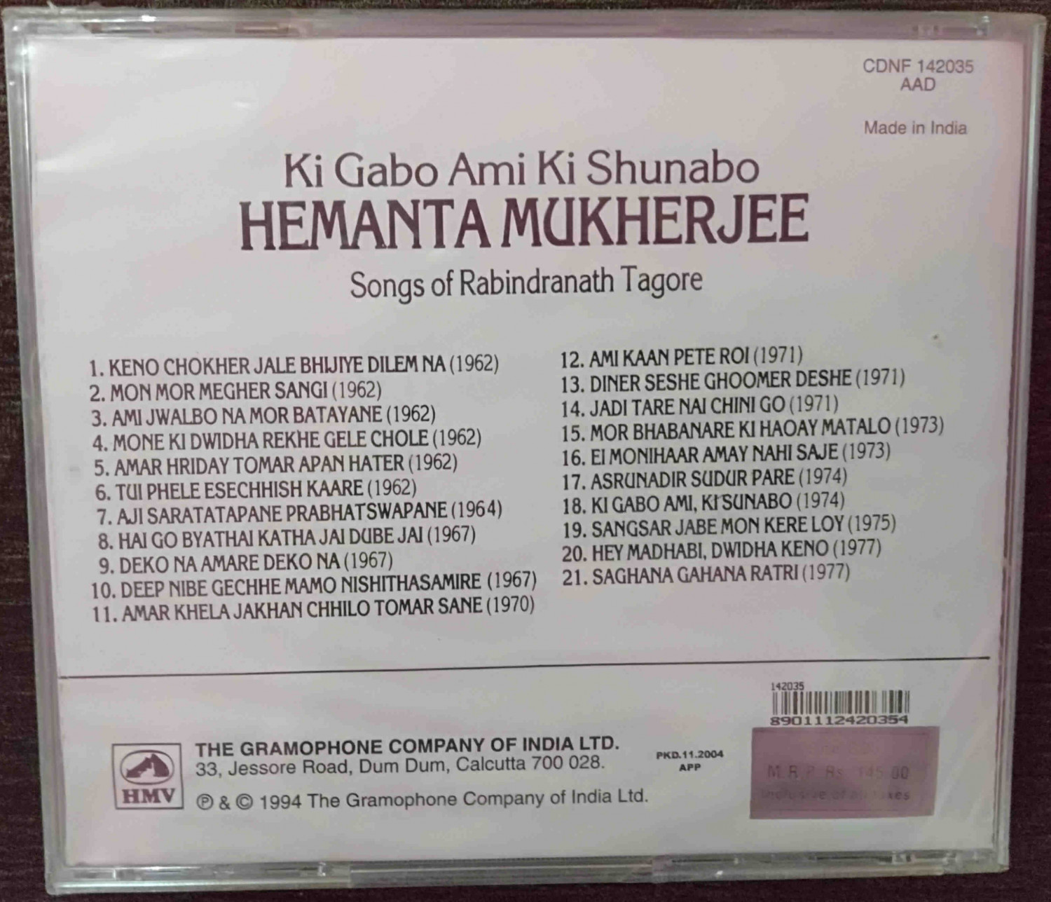 | Title | : | Hemanta Mukherjee - Ki Gabo Ami Ki Shunabo - Songs Of Rabindranath Tagore |