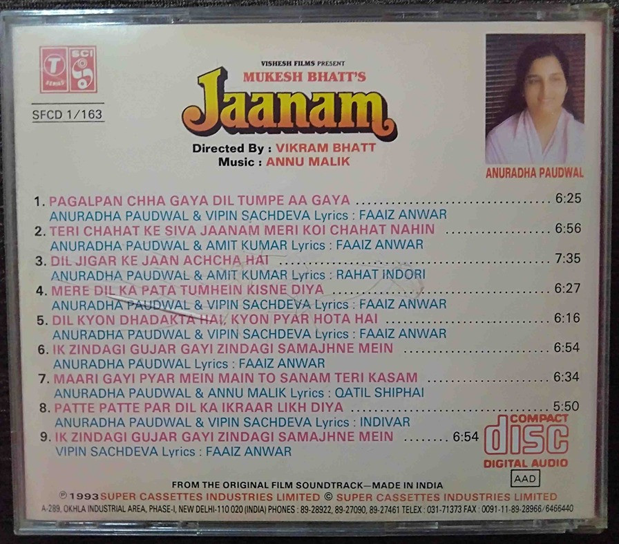 Jaanam (1993) Anu Malik Pre-Owned T-Series Audio CD