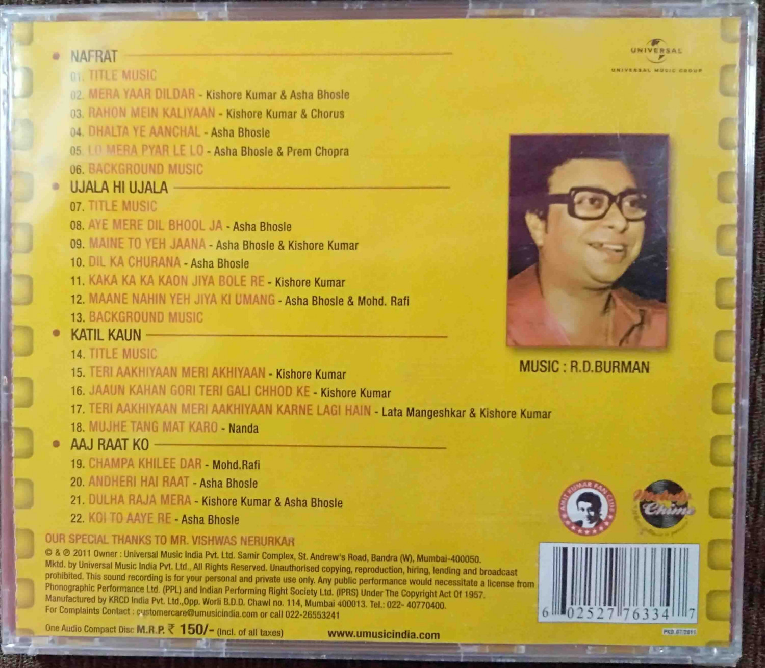| 11. Kaka Ka Ka Kaon Jiya Bole Re | : | Kishore Kumar |