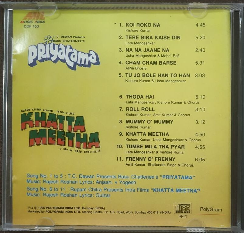 | 9. Khatta Meetha | : | Kishore Kumar, Usha Mangeshkar & Chorus |