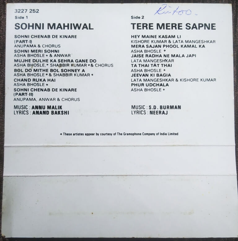 | Title | : | Sohni Mahiwal / Tere Mere Sapne |